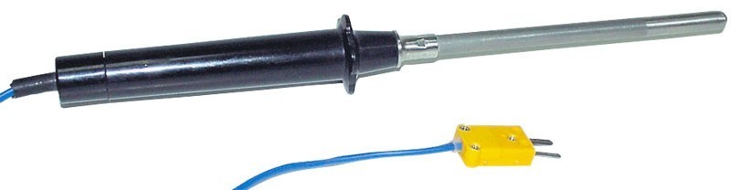 Термопара К-типа погружная контактная для измерения высоких температур. Выполнена в виде щупа. Диапазон измерений от -50 до 1200 °С. Длина 10 см, диаметр 8 мм.
